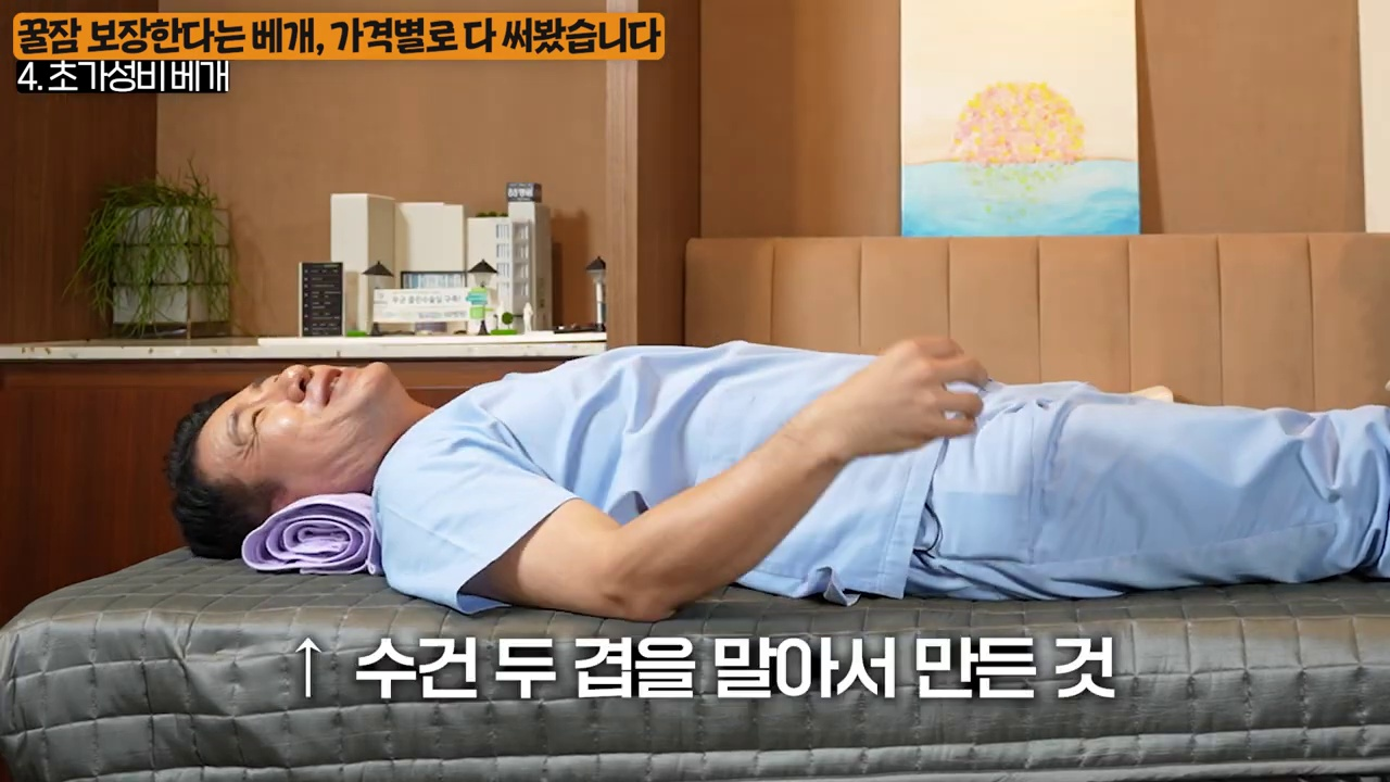 실제로 영상에서는 수건으로 만든 베개도 적절히 높이를 조절하면 충분히 있다고 강조합니다.